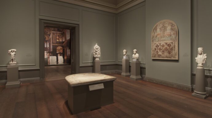 - Η πρώτη ενότητα, «Από τον αρχαίο στον Βυζαντινό κόσμο», παρουσιάζει τη μετάβαση από την αρχαιότητα στους πρώιμους βυζαντινούς χρόνους.